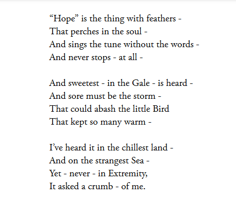 Source: https://owlcation.com/humanities/Analysis-of-Poem-Hope-Is-The-Thing-With-Feathers-by-Emily-Dickinson